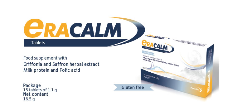 Food supplement with Griffonia and Saffron herbal extract, Milk protein and Folic acid.